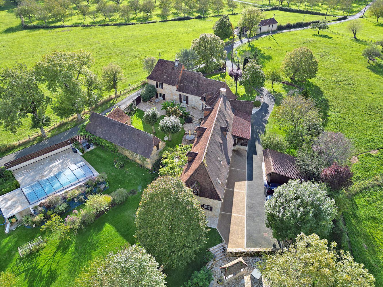 Une piscine, des terrasses aménagées pour vous reposer, un grand parc, la grange aménagée avec jacuzzi pour une détente méritée après une virée sur les routes de la Dordogne en Périgord noir, avant de dîner sur place.