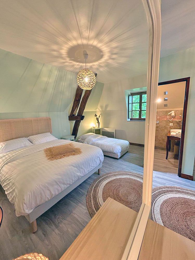 3 chambres doubles et 1 suite familiale pouvant accueillir jusqu'à cinq personnes.